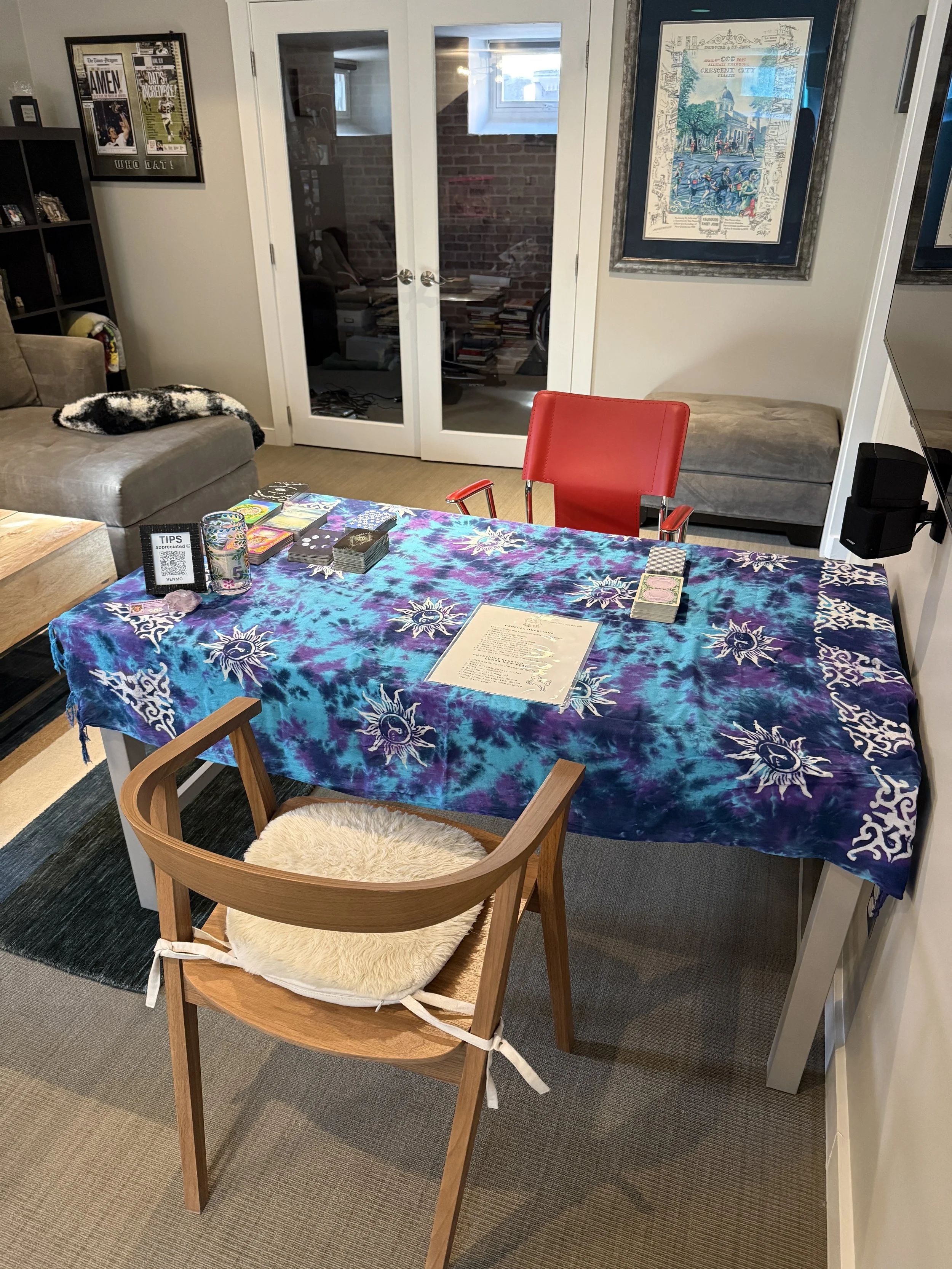 If possible, it would also be helpful for me to know your questions or have a general idea of what you want to focus on in your reading so I know what types of tarot decks and oracle decks to bring to our session. This can also be done the day before, but no worries if you don’t have specific questions :)
