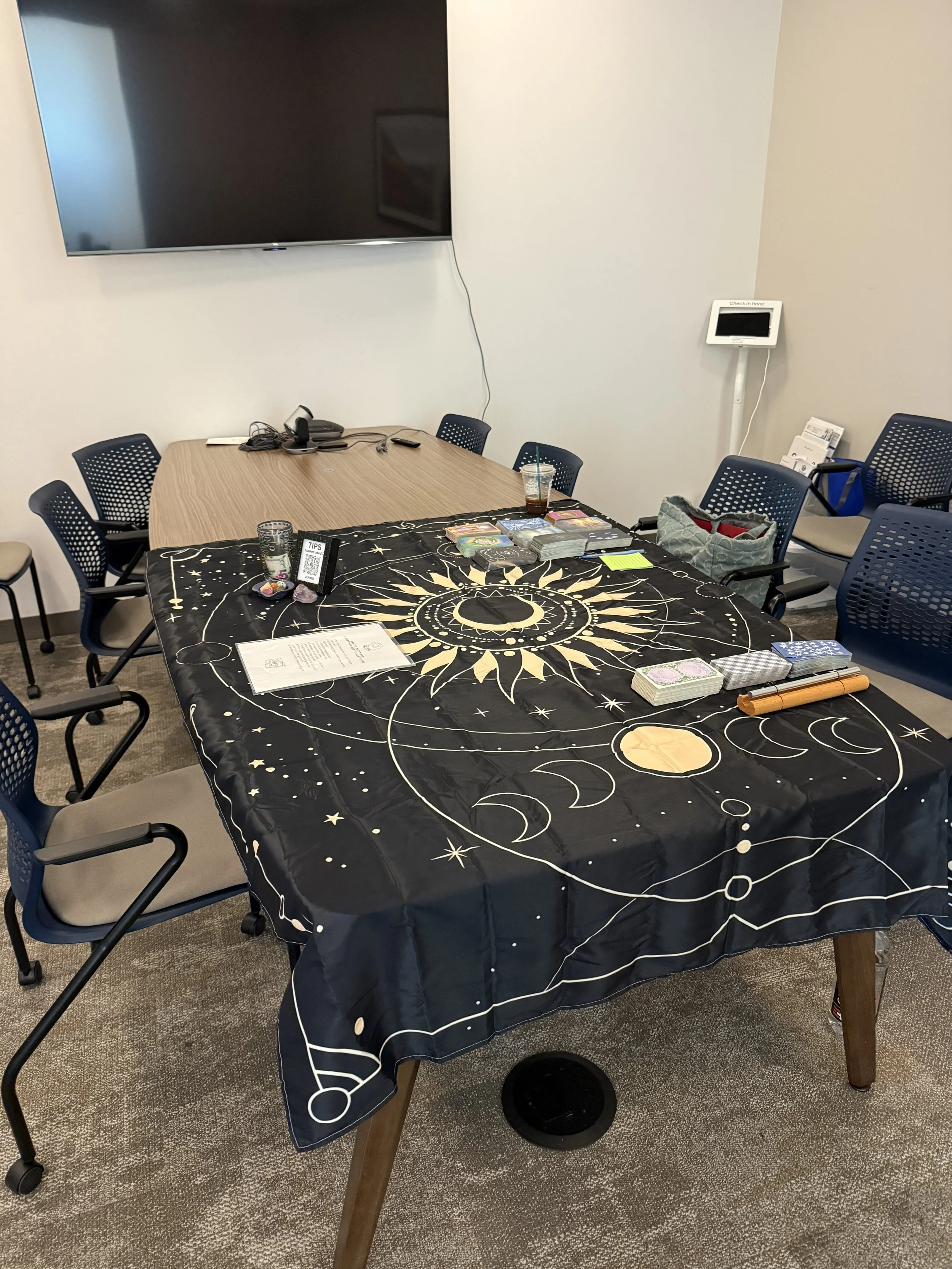 Tarot reader at a holiday party/gala at a hotel